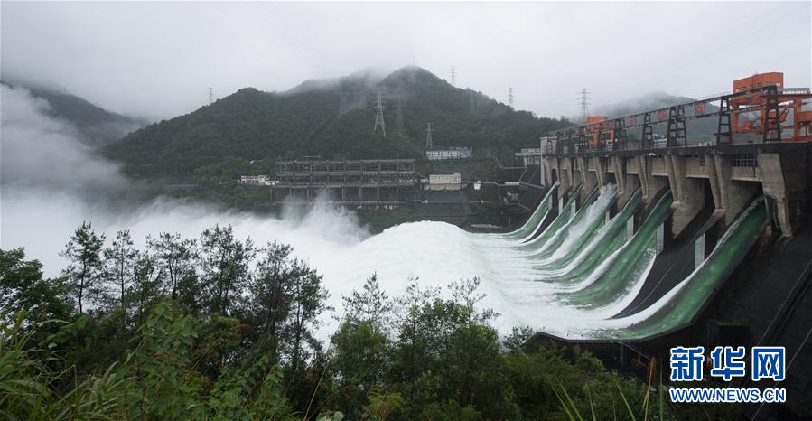 7月7日下午開啟7孔泄洪的新安江水庫。受持續(xù)降水影響,浙江新安江水庫水位持續(xù)快速上升。繼當日10時開啟3孔、12時開啟5孔泄洪后,新安江水庫于16時增加到7孔泄洪。新安江水庫是華東地區(qū)最大的水庫,在錢塘江流域的防洪度汛中起到關鍵作用。新華社記者翁忻旸攝