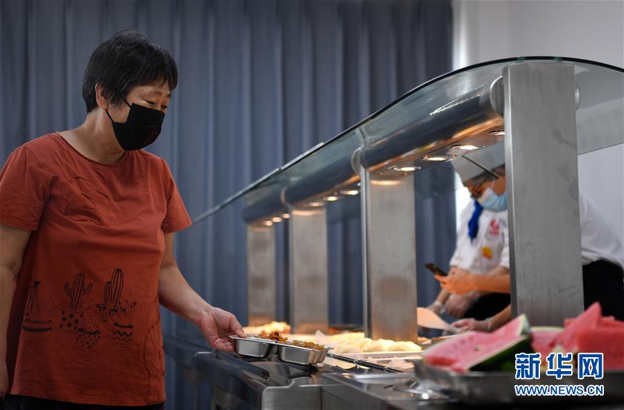 7月7日,老人在付村康養(yǎng)中心(老人家食堂)打餐。近日,天津市西青區(qū)精武鎮(zhèn)付村康養(yǎng)中心(老人家食堂)運營已步入正軌。該老人家食堂面積約850平方米,由專業(yè)餐飲企業(yè)負責日常運營,并享受政府補貼,可滿足付村及周邊老人的就餐需求,還能提供外帶、送餐服務(wù)。據(jù)了解,為切實解決老年人吃飯難問題、增加老年人幸福感,西青區(qū)將老人家食堂建設(shè)納入2020年區(qū)政府民心工程。目前,已建成51家老人家食堂。新華社記者李然攝