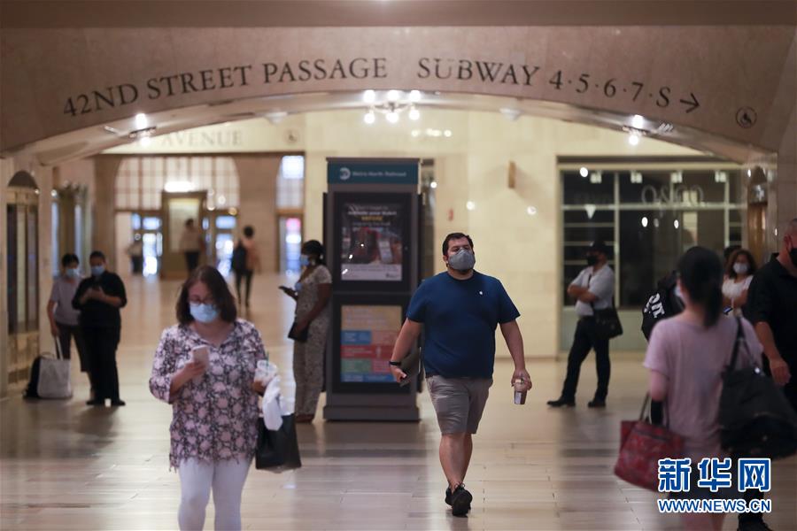 7月8日,行人穿過美國紐約中央車站通道。美國約翰斯·霍普金斯大學(xué)8日發(fā)布的新冠疫情最新統(tǒng)計(jì)數(shù)據(jù)顯示,美國累計(jì)確診病例超過300萬例。數(shù)據(jù)顯示,截至美國東部時(shí)間8日11時(shí)34分(北京時(shí)間23時(shí)34分),美國累計(jì)確診病例3016515例,累計(jì)死亡病例131594例。新華社記者王迎攝