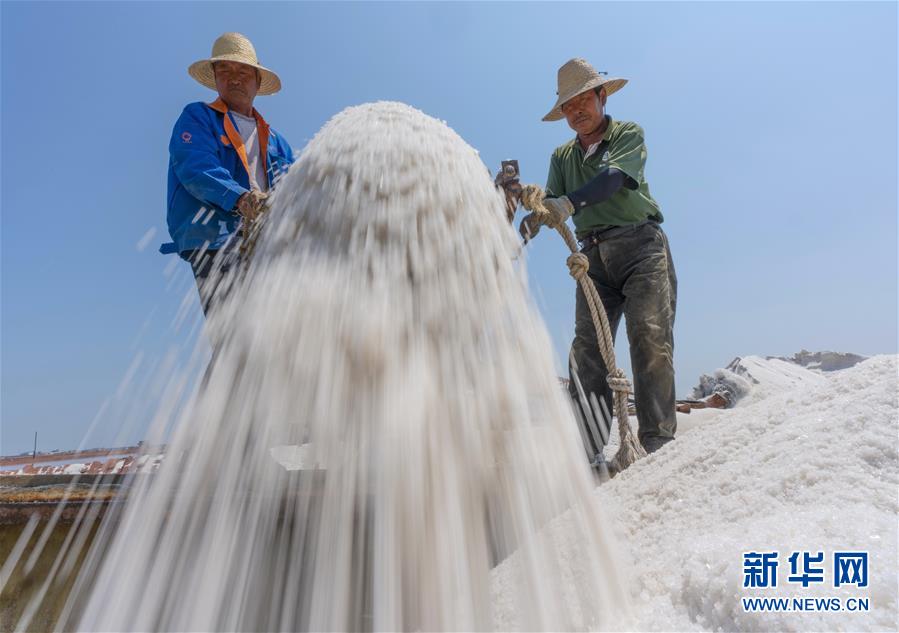 7月9日,唐山市曹妃甸區(qū)南堡鹽場的工人將收獲的春鹽裝船。在我國長蘆鹽區(qū)海鹽生產(chǎn)基地之一的河北省唐山市曹妃甸區(qū)南堡鹽場,一年一度的春鹽收獲工作即將結(jié)束,今年南堡鹽場的春鹽產(chǎn)量預(yù)計可達(dá)72萬噸。新華社記者楊世堯攝