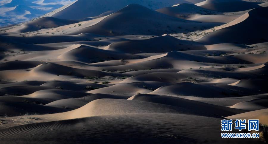 這是7月8日拍攝的騰格里沙漠風(fēng)光。位于內(nèi)蒙古自治區(qū)阿拉善左旗西南部和甘肅省中部邊境的騰格里沙漠是我國(guó)第四大沙漠,總面積約為4.3萬(wàn)平方公里。夏日傍晚,騰格里沙漠連綿的沙丘被日光勾勒出美麗的線條,美不勝收。新華社記者連振攝
