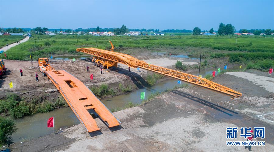 7月10日,工作人員在演練現(xiàn)場(chǎng)搭建機(jī)械化橋梁(無(wú)人機(jī)照片)。當(dāng)日,由吉林省交通運(yùn)輸廳主辦的公路橋梁水毀搶通應(yīng)急演練在長(zhǎng)春市雙陽(yáng)區(qū)雙陽(yáng)河舉行,參與演練人員從汛情水毀信息報(bào)送、應(yīng)急裝備快速集結(jié)、機(jī)械化橋梁搶通搭設(shè)、善后處理等方面進(jìn)行實(shí)戰(zhàn)演練。新華社記者張楠攝