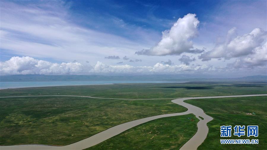 7月10日拍攝的青海湖畔風(fēng)光(無人機(jī)照片)。盛夏時(shí)節(jié),被譽(yù)為“中國最美湖泊”的青海湖畔景色宜人,藍(lán)天、白云、湖水與草原組成一幅壯美的畫卷。新華社記者張宏祥攝
