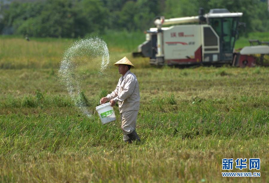 7月11日,村民在湖南省衡陽市衡陽縣臺(tái)源鎮(zhèn)臺(tái)九村收割后的稻田施肥,為種植晚稻做準(zhǔn)備。近日,湖南各地農(nóng)村陸續(xù)進(jìn)入“雙搶”季,農(nóng)民緊抓農(nóng)時(shí),搶收搶種,力爭(zhēng)糧食穩(wěn)產(chǎn)豐收。新華社記者趙眾志攝