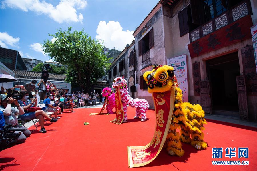7月11日,演員在“慶祝澳門(mén)歷史城區(qū)申遺成功15周年嘉年華”上表演舞獅。新華社記者張金加攝
