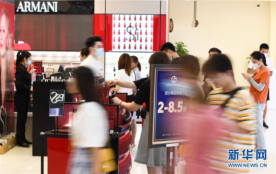 7月12日,游客在海口日月廣場免稅店選購化妝品。新華社記者 楊冠宇 攝