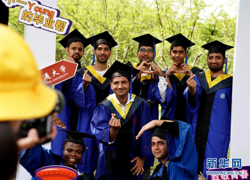 7月12日,上海交通大學留學生畢業(yè)生在校園里合影留念。新華社記者 劉穎 攝
