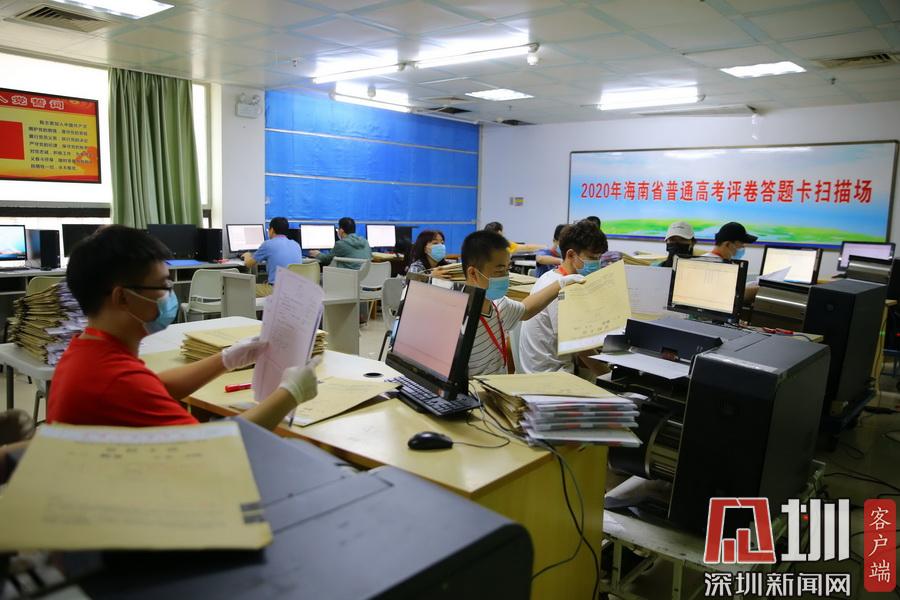 2020年7月13日,在海南師范大學(xué)高考評卷場,工作人員仔細拆封考卷并進行掃描入電腦,整個過程井然有序。在評卷現(xiàn)場的入口,除了有武警把守之外,所有工作人員進入到評卷場均有專人使用手柄式金屬探測器對其進行安檢,并通過身份證識別系統(tǒng)中進行身份識別,方可以進入??忌痤}卡由武警24小時值守,并實行嚴(yán)密的視頻監(jiān)控。