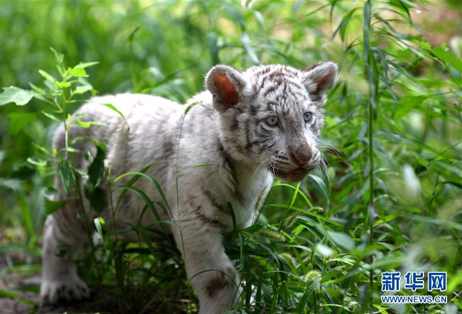 7月13日,“妞妞”在動物園的院子里散步。河北石家莊市動物園的孟加拉白虎寶寶“妞妞”只有3個月大,由于虎媽媽經(jīng)驗不足,“妞妞”一出生便由動物園工作人員按科學(xué)方法人工飼養(yǎng)。目前,在飼養(yǎng)員的精心照料下,“妞妞”正在茁壯成長。新華社記者 王曉 攝