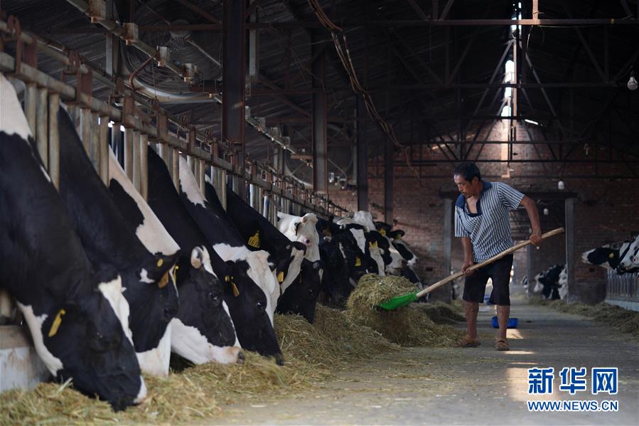 7月11日,河北省清河縣永興奶牛養(yǎng)殖場的工人在給奶牛投放飼料。近年來,河北省清河縣將扶貧工作與現(xiàn)代農(nóng)業(yè)結(jié)合,以龍頭企業(yè)為引領(lǐng),成立合作社,鼓勵貧困戶利用扶貧資金入股奶牛養(yǎng)殖場,幫助他們常年獲得穩(wěn)定收益。同時,貧困戶農(nóng)閑時還可到產(chǎn)業(yè)園區(qū)打工,既拿股金,又掙薪金,實(shí)現(xiàn)“造血式”脫貧。新華社記者 牟宇 攝