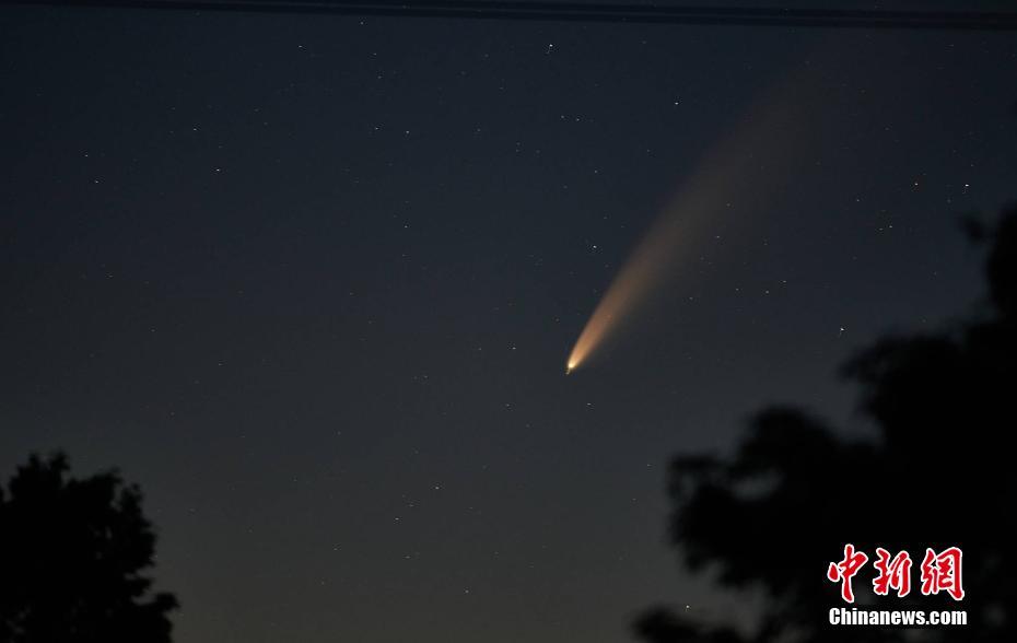 當(dāng)?shù)貢r間7月12日,德國薩克森州,當(dāng)?shù)匾箍罩锌捎^測到NEOWISE彗星。圖片來源:視覺中國
