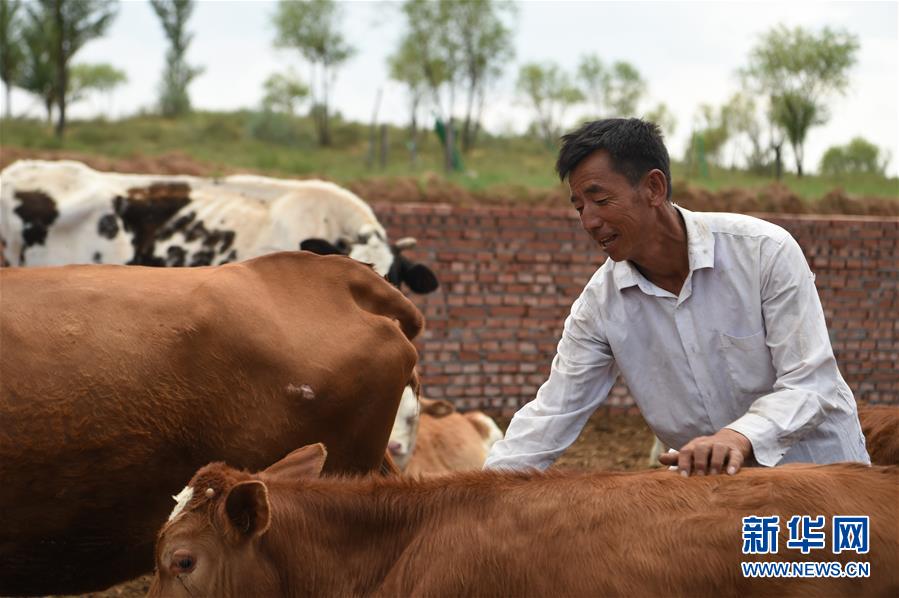 7月14日,高二仁在觀察牛的生長情況。新華社記者 李志鵬 攝