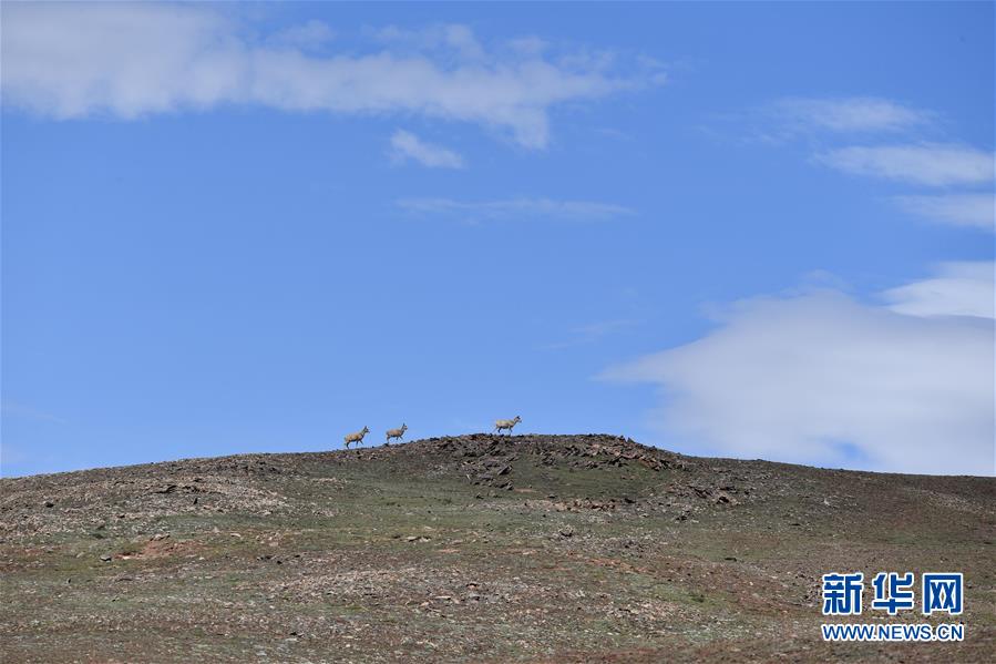 7月7日在可可西里卓乃湖區(qū)域拍攝的藏羚羊。目前正值藏羚羊產(chǎn)仔季。來(lái)自青海三江源、新疆阿爾金山、西藏羌塘等地的藏羚羊來(lái)到位于青海省可可西里腹地、被譽(yù)為“藏羚羊大產(chǎn)房”的卓乃湖區(qū)域產(chǎn)仔。新華社記者 張龍 攝