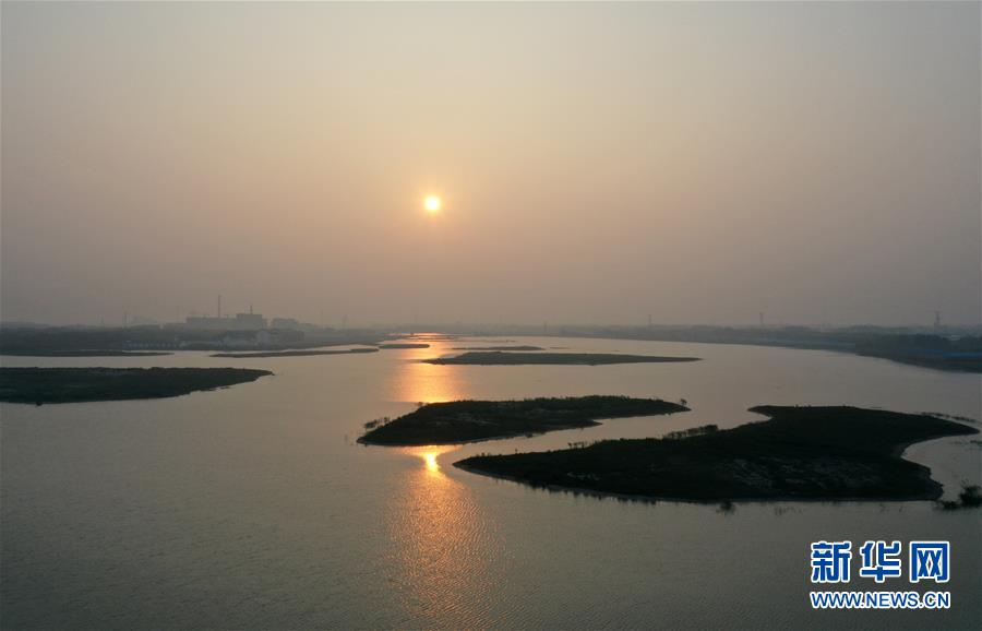 7月17日拍攝的鎮(zhèn)賚環(huán)城國家濕地公園日出景色(無人機照片)。鎮(zhèn)賚環(huán)城國家濕地公園位于吉林西部,處于松嫩平原草甸草原向內(nèi)蒙古高原典型草原的過渡地帶。濕地公園總面積2785.29公頃,廣闊的水域以及多種植被和濕地類型,為眾多鳥類提供了充足的食物來源和良好的棲息環(huán)境。據(jù)統(tǒng)計,濕地公園內(nèi)現(xiàn)有鳥類112種,其中國家Ⅰ級保護鳥類7種,國家Ⅱ級保護鳥類30種。新華社記者林宏攝