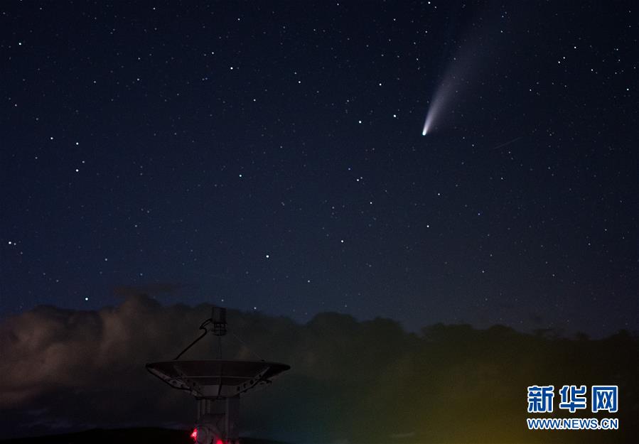 7月18日晚,在明安圖觀測(cè)基地,尼歐懷茲彗星劃過天際。7月18日晚至19日凌晨,在位于內(nèi)蒙古錫林郭勒盟正鑲白旗境內(nèi)的國家天文臺(tái)明安圖觀測(cè)基地,尼歐懷茲彗星劃過天際。在明安圖觀測(cè)基地內(nèi),排列著100面白色的拋物面天線。這個(gè)龐大的天線陣列便是草原“天眼”——明安圖射電頻譜日像儀。草原“天眼”持續(xù)接收太陽射電輻射,然后由科研人員進(jìn)行數(shù)據(jù)分析研究,對(duì)空間環(huán)境監(jiān)測(cè)、太陽活動(dòng)預(yù)報(bào)均有重要作用。新華社記者連振攝
