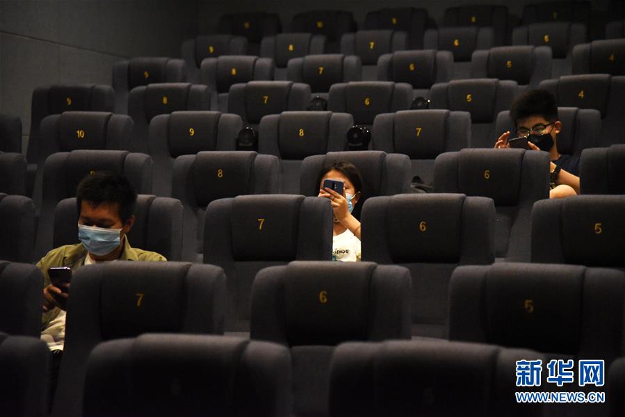 7月20日,濟(jì)南新世紀(jì)電影城陽光100店的觀眾隔位就座。當(dāng)日,山東濟(jì)南市部分電影院在嚴(yán)格防控疫情的基礎(chǔ)上陸續(xù)恢復(fù)開放。新華社記者王凱攝