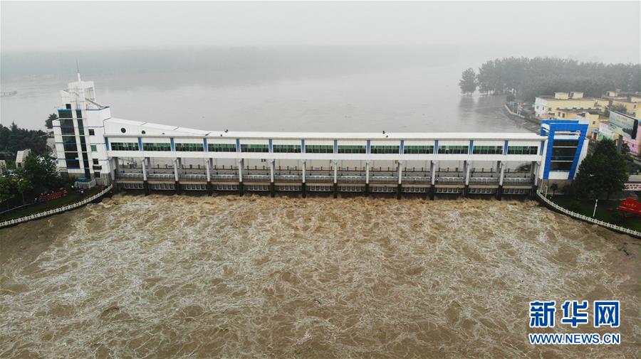 7月20日,洪水通過(guò)王家壩閘涌入蒙洼蓄洪區(qū)(無(wú)人機(jī)照片)。當(dāng)日8時(shí)32分,淮河干流王家壩閘開(kāi)閘泄洪。受近期強(qiáng)降雨影響,淮河干流王家壩站水位19日快速上漲,7月20日6時(shí)36分水位漲至29.66米,超過(guò)保證水位0.36米?;春油跫覊伍l開(kāi)閘泄洪,蒙洼蓄洪區(qū)啟用。新華社記者黃博涵攝