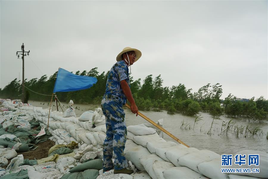 劉良武在江洲鎮(zhèn)的長(zhǎng)江堤壩上巡查(7月19日攝)。新華社記者周密攝