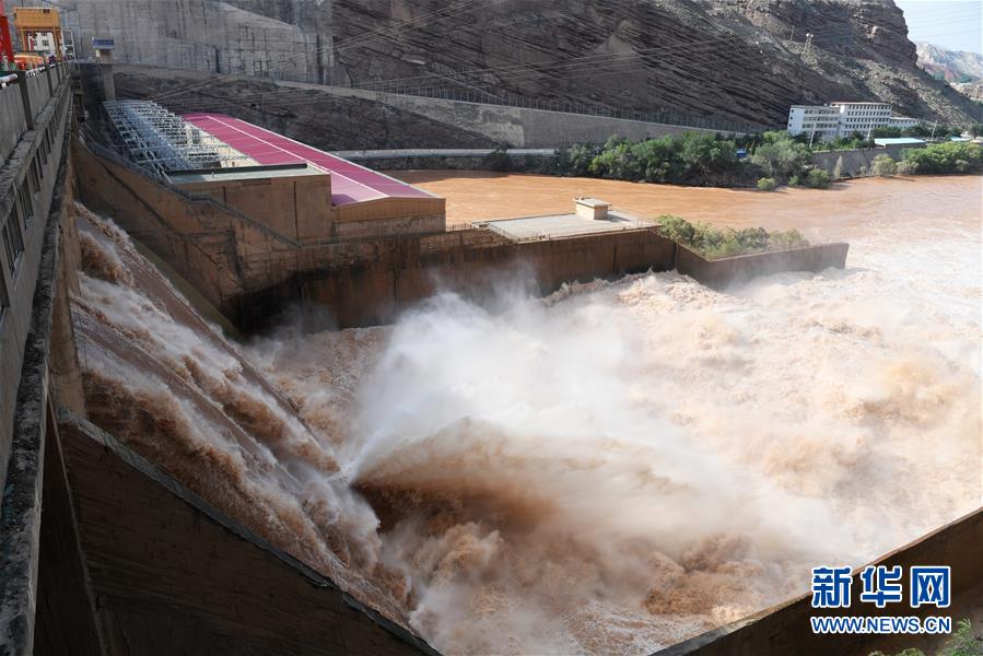 7月21日,鹽鍋峽水庫正在泄洪。新華社記者陳斌攝