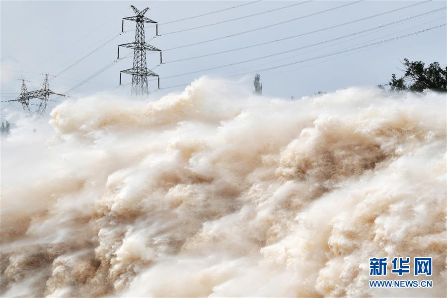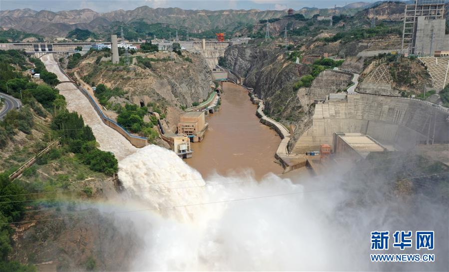 7月21日,鹽鍋峽水庫正在泄洪。新華社記者陳斌攝