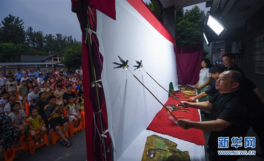 當(dāng)日,浙江省杭州市余杭區(qū)塘棲鎮(zhèn)河西埭村“衛(wèi)家班皮影戲”劇團(tuán)的藝人們來(lái)到余杭區(qū)喬司街道和睦橋村進(jìn)行演出,這是近期杭州市余杭區(qū)夏季鄉(xiāng)村“文化走親”的重要活動(dòng)之一。今年6月開始,杭州市余杭區(qū)塘棲鎮(zhèn)組織多支文化表演團(tuán)體以“文化走親”的形式,先后送戲到余杭區(qū)近20個(gè)鄉(xiāng)村文化禮堂,豐富夏日鄉(xiāng)村百姓文化生活。在余杭塘棲一帶,歷史上曾活躍著一支以演出皮影戲出名的民間戲班子,號(hào)稱“衛(wèi)家班”。2016年,塘棲鎮(zhèn)河西埭村在文化禮堂的建設(shè)過(guò)程中,將當(dāng)?shù)貍鹘y(tǒng)的“衛(wèi)家班皮影戲”作為“一村一品”特色項(xiàng)目進(jìn)行了搶救性保護(hù)。2018年12月,“衛(wèi)家班皮影戲”被列入杭州市非物質(zhì)文化遺產(chǎn)代表性項(xiàng)目名錄。新華社記者徐昱攝