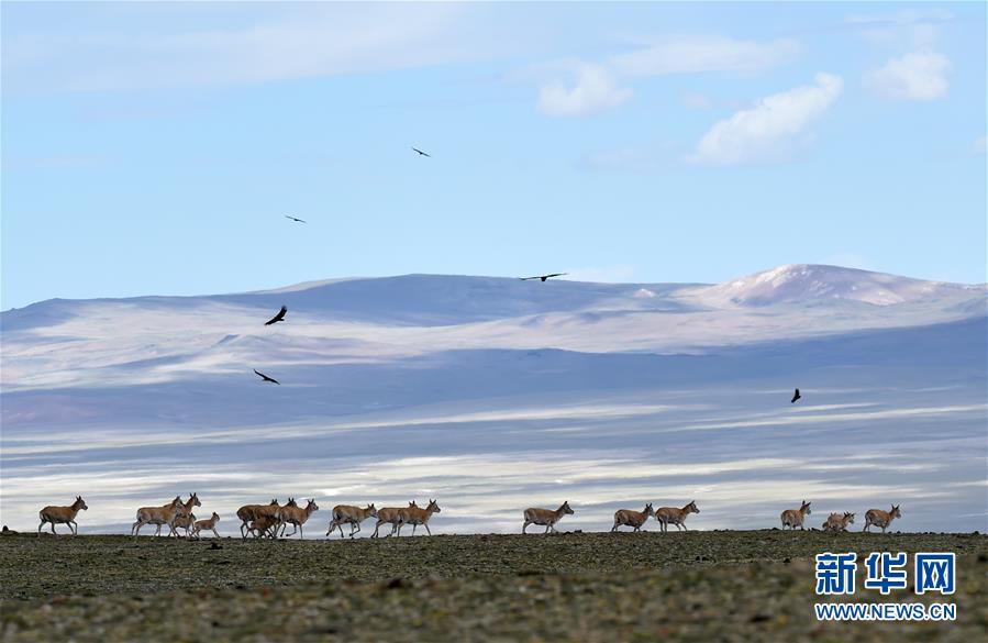 7月17日在西藏尼瑪縣榮瑪鄉(xiāng)附近拍攝的藏羚羊群。2000年,西藏羌塘自然保護區(qū)晉升為國家級自然保護區(qū)。20年來,經(jīng)過西藏各級各部門的不懈努力,羌塘國家級自然保護區(qū)內(nèi)的重點保護野生動物種群數(shù)量明顯增加,其中,藏羚羊種群數(shù)量由原來的5至7萬只,恢復到目前的15萬只以上。羌塘國家級自然保護區(qū)核心地帶的西藏尼瑪縣榮瑪鄉(xiāng)附近,目前就有近6萬只藏羚羊。新華社記者覺果攝