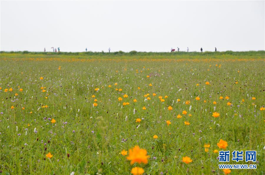 7月22日,游客在金蓮川草原上游玩。金蓮川草原位于內(nèi)蒙古自治區(qū)錫林郭勒盟正藍(lán)旗,正值盛夏,金蓮川草原上鮮花綻放,景色宜人。新華社記者徐欽攝