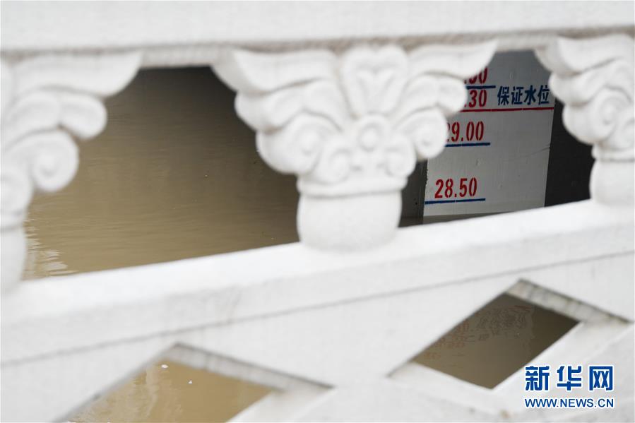 這是7月23日在安徽省阜南縣拍攝的關(guān)閘后的淮河王家壩閘閘下水位。當(dāng)日13時,淮河干流王家壩閘關(guān)閘,停止向蒙洼蓄洪區(qū)泄洪。新華社記者張端攝