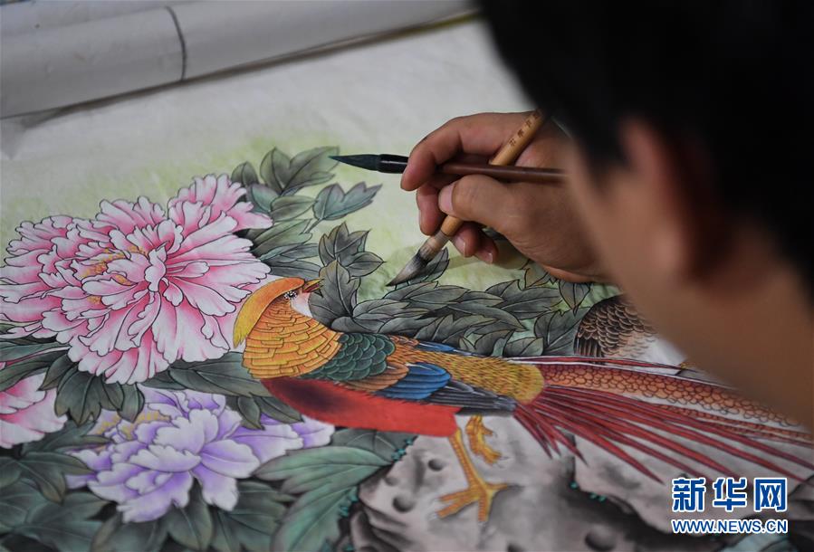 7月22日,王紅彬在家中創(chuàng)作工筆畫(huà)。新華社記者朱旭東攝