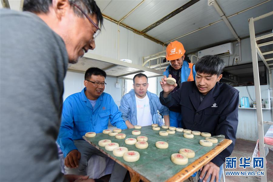 在索爾庫(kù)里宿營(yíng)地,中鐵一局的施工人員排隊(duì)打飯(7月19日攝)。新華社記者 丁磊 攝