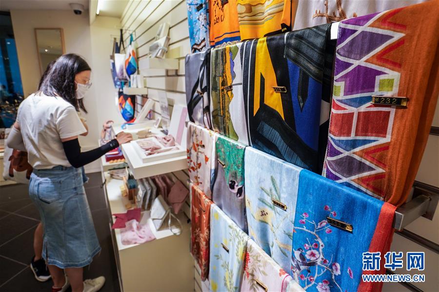 7月24日,觀眾在蘇州博物館內(nèi)選購文創(chuàng)產(chǎn)品。近日,江蘇蘇州博物館迎來眾多參觀者,人們在這里感受文化、學(xué)習(xí)知識,豐富暑期生活。新華社記者李博攝