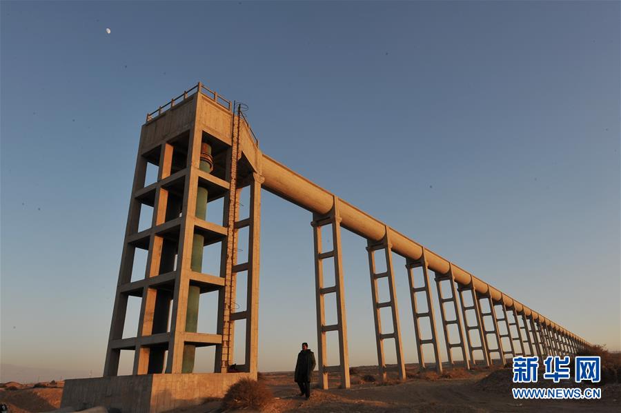 這是位于紅寺堡境內(nèi)的寧夏扶貧揚(yáng)黃灌溉工程泵站輸水管道(2009年12月27日攝)。新華社記者 王鵬 攝