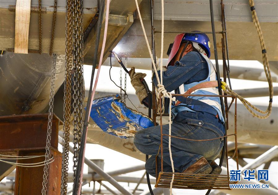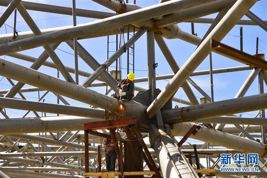 7月27日,工人在拉薩貢嘎國際機(jī)場(chǎng)T3航站樓的工地上作業(yè)。新華社記者 田金文 攝