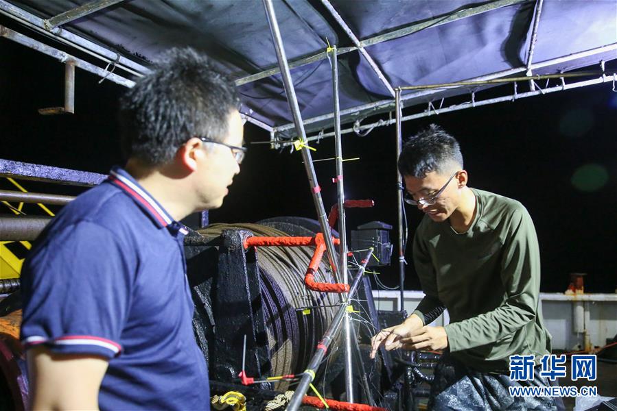 7月11日,科研人員在科考船上觀察動物。新華社記者張麗蕓攝