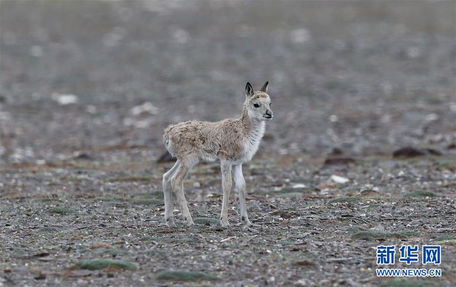 這是7月7日在可可西里卓乃湖區(qū)域拍攝的一只藏羚羊幼仔。新華社記者張龍攝