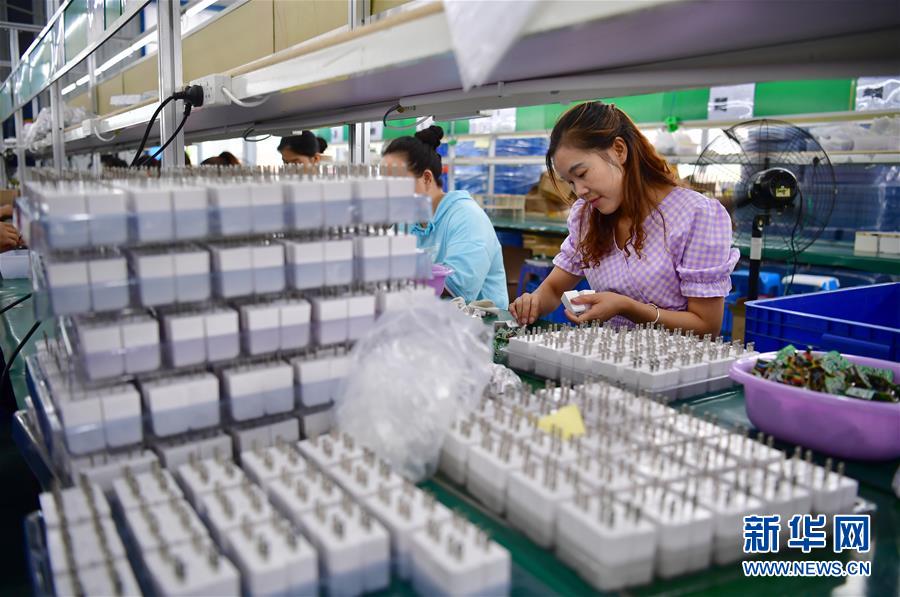 7月25日,在陜西漢陰縣澗池鎮(zhèn)紫云南郡易地扶貧搬遷安置社區(qū)的社區(qū)工廠內(nèi),社區(qū)居民在加工插頭。陜南地區(qū)地處秦巴山區(qū),是陜西脫貧攻堅(jiān)的主戰(zhàn)場(chǎng)。近年來(lái),陜南各縣區(qū)因地制宜、精準(zhǔn)施策,通過發(fā)展社區(qū)工廠、特色種植、旅游扶貧、技能培訓(xùn)、電商帶貨等措施,促進(jìn)多種產(chǎn)業(yè)發(fā)展,助力農(nóng)民增收。新華社記者邵瑞攝