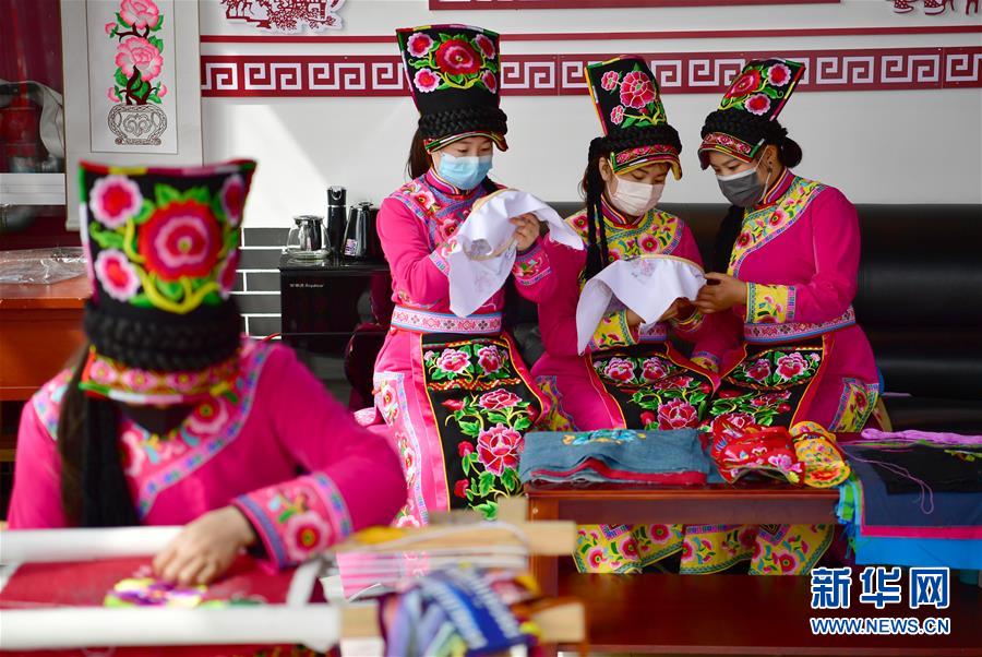 在陜西寧強(qiáng)縣大安鎮(zhèn)江林安置點一家羌族刺繡文化公司的傳習(xí)基地內(nèi),學(xué)員在進(jìn)行練習(xí)(3月13日攝)。陜南地區(qū)地處秦巴山區(qū),是陜西脫貧攻堅的主戰(zhàn)場。近年來,陜南各縣區(qū)因地制宜、精準(zhǔn)施策,通過發(fā)展社區(qū)工廠、特色種植、旅游扶貧、技能培訓(xùn)、電商帶貨等措施,促進(jìn)多種產(chǎn)業(yè)發(fā)展,助力農(nóng)民增收。新華社記者邵瑞攝