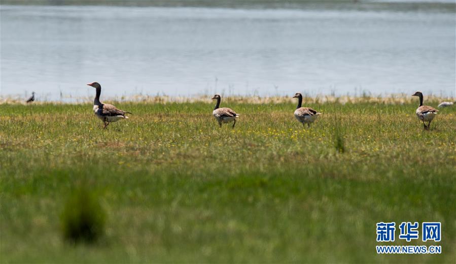 7月28日,灰雁在桃力廟—阿拉善灣海子覓食。鄂爾多斯?jié)竦匚挥趲觳箭R沙漠、毛烏素沙地接壤地帶,2002年被列入國際重要濕地名錄。從2006年開始,由于濕地湖面萎縮、湖心島消失,在此筑巢繁殖的世界瀕危物種遺鷗幾近消失。近年來,當?shù)夭扇《喾N治理措施,濕地生態(tài)環(huán)境逐步好轉(zhuǎn)。2019年起,濕地內(nèi)的桃力廟—阿拉善灣海子迎來遺鷗大規(guī)模“回歸”。如今,40多種鳥類在此棲息,鄂爾多斯?jié)竦刂匦鲁蔀轼B類的樂園。新華社記者連振攝