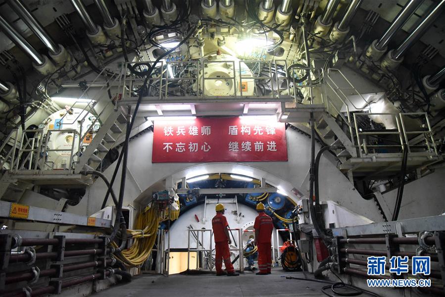 7月29日,“萬(wàn)里黃河第一隧”——濟(jì)南黃河隧道工程施工人員在查看盾構(gòu)機(jī)工作情況。新華社記者王凱攝