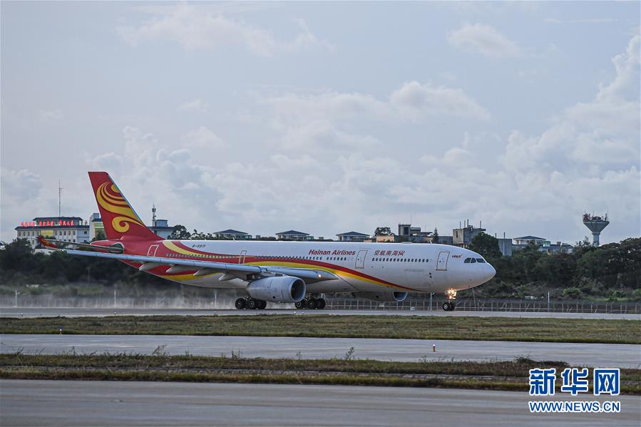 這是7月30日在??诿捞m國際機場二期擴建項目拍攝的試飛現(xiàn)場。新華社記者蒲曉旭攝