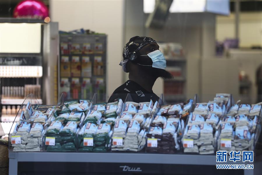 7月29日,在美國紐約,一名男子在超市內(nèi)等待結(jié)賬。美國約翰斯·霍普金斯大學(xué)實(shí)時(shí)統(tǒng)計(jì)數(shù)據(jù)顯示,截至29日,美國累計(jì)新冠確診病例已超過440萬例,累計(jì)死亡病例超過15萬例。新華社記者王迎攝