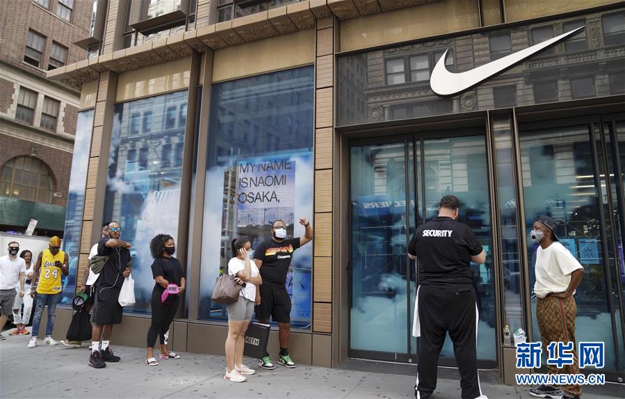 7月30日,人們?cè)诿绹?guó)紐約蘇豪商業(yè)區(qū)等待進(jìn)店購(gòu)物。美國(guó)商務(wù)部30日公布的首次預(yù)估數(shù)據(jù)顯示,受新冠疫情導(dǎo)致經(jīng)濟(jì)大面積“停擺”和消費(fèi)停滯拖累,今年第二季度美國(guó)實(shí)際國(guó)內(nèi)生產(chǎn)總值(GDP)按年率計(jì)算下滑32.9%,創(chuàng)1947年有記錄以來最大降幅。新華社記者王迎攝