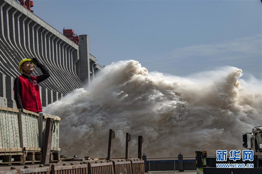 7月31日,一名工人在三峽泄洪壩段附近忙碌。新華社記者杜華舉攝