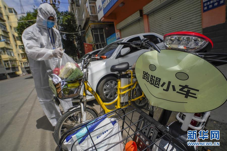 8月3日,在烏魯木齊天山區(qū)西河壩前街社區(qū),社區(qū)工作人員準(zhǔn)備騎上”跑腿小車(chē)“為居民送去生活物品。新疆烏魯木齊市天山區(qū)西河壩前街社區(qū)主次干道較多,院落分布分散。新冠肺炎疫情防控期間,社區(qū)整合現(xiàn)有資源,將暫時(shí)閑置的自行車(chē)、電動(dòng)車(chē)集中起來(lái),貼上“跑腿小車(chē)”標(biāo)識(shí),成立便民服務(wù)隊(duì),社區(qū)工作人員通過(guò)“跑腿小車(chē)”可將居民網(wǎng)絡(luò)定制的“菜袋子”“藥盒子”快速送達(dá),給居民帶來(lái)方便。新華社記者趙戈攝