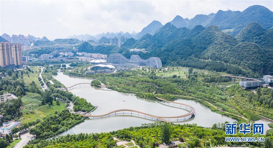 六盤水明湖國(guó)家濕地公園風(fēng)景(無人機(jī)照片,6月17日攝)。新華社記者陶亮攝