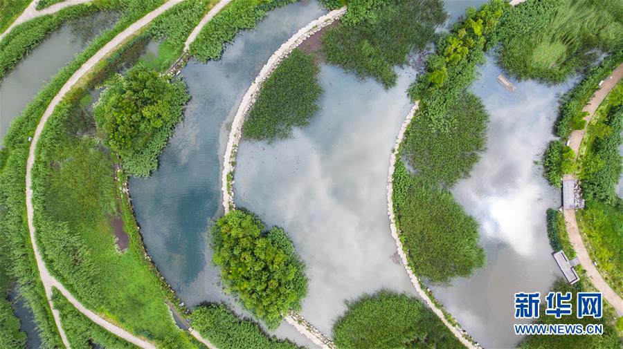 六盤水明湖國家濕地公園風景(無人機照片,6月17日攝)。新華社記者陶亮攝