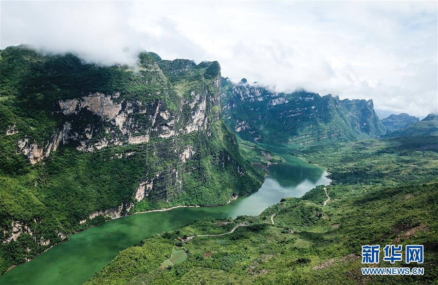 貴州北盤江大峽谷國(guó)家濕地公園風(fēng)景(無人機(jī)照片,2018年8月7日攝)。新華社記者陶亮攝
