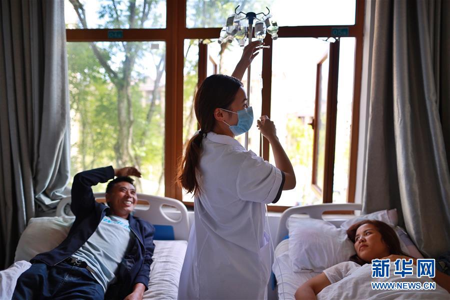 搬遷群眾在柏楊林易地扶貧搬遷安置點衛(wèi)生院內(nèi)治療(8月3日攝)。貴州省畢節(jié)市七星關(guān)區(qū)柏楊林易地扶貧搬遷安置點是畢節(jié)市最大的易地扶貧搬遷安置點,總面積約1.1平方公里,從2017年開始至今,共有34個鄉(xiāng)鎮(zhèn)6372戶29001人安置到位。如今,安置點內(nèi)教育、醫(yī)療、就業(yè)扶貧車間、長幼日間托養(yǎng)照料中心等設(shè)施齊全,搬遷群眾在這里過上了安居樂業(yè)的幸福生活。新華社記者劉續(xù)攝