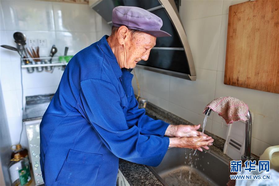 石連英在柏楊林易地扶貧搬遷安置點家中洗手(8月3日攝)。貴州省畢節(jié)市七星關(guān)區(qū)柏楊林易地扶貧搬遷安置點是畢節(jié)市最大的易地扶貧搬遷安置點,總面積約1.1平方公里,從2017年開始至今,共有34個鄉(xiāng)鎮(zhèn)6372戶29001人安置到位。如今,安置點內(nèi)教育、醫(yī)療、就業(yè)扶貧車間、長幼日間托養(yǎng)照料中心等設(shè)施齊全,搬遷群眾在這里過上了安居樂業(yè)的幸福生活。新華社記者劉續(xù)攝