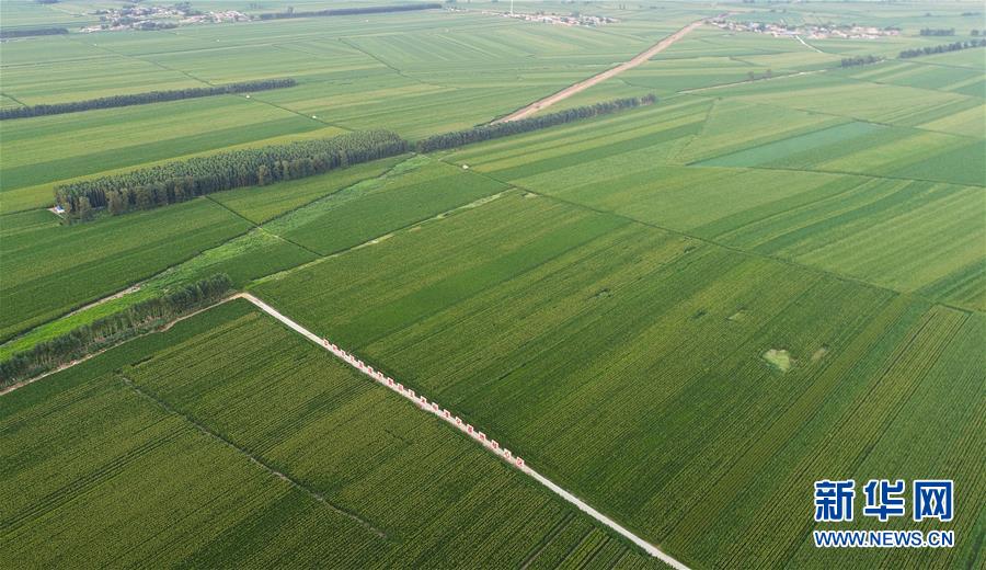 吉林省梨樹縣國家百萬畝綠色食品原料(玉米)標(biāo)準(zhǔn)化生產(chǎn)基地核心示范區(qū)(7月23日攝,無人機照片)。新華社記者許暢攝